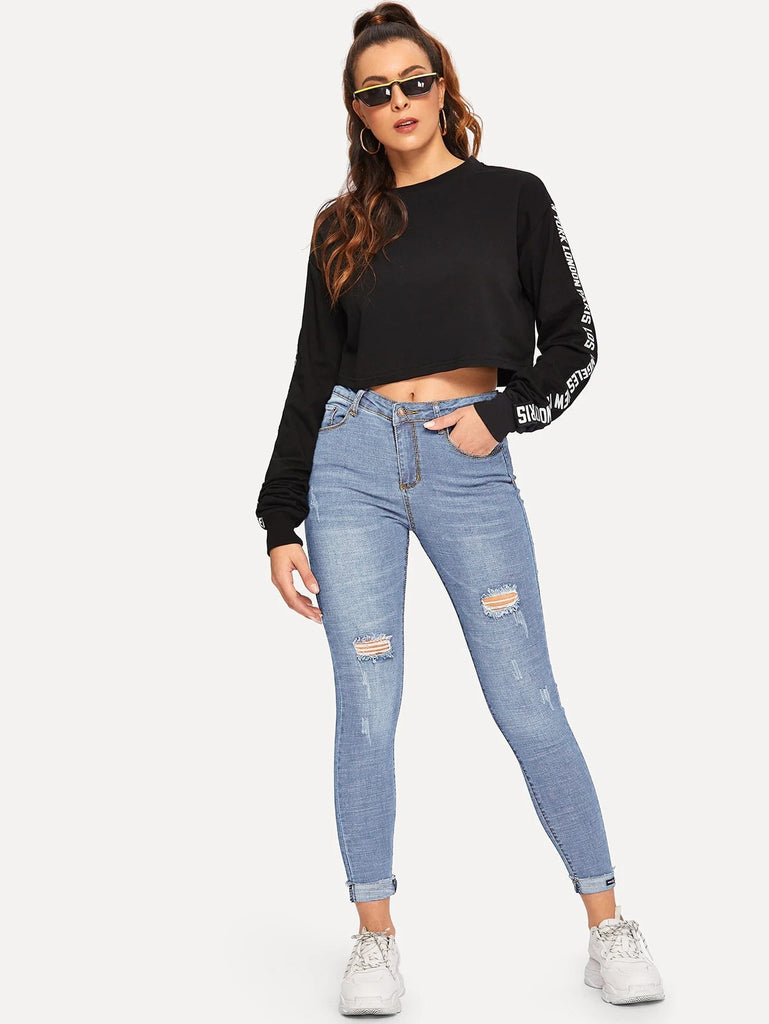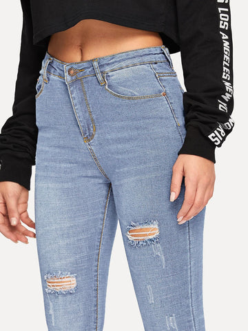 Ripped Rolled Hem Skinny Jeans
