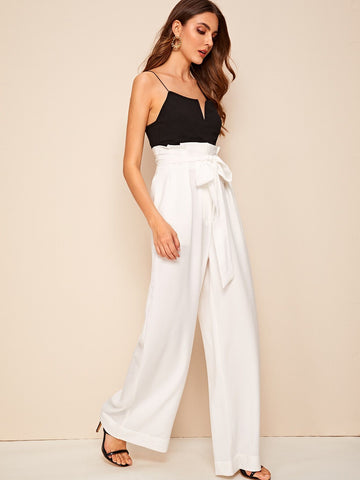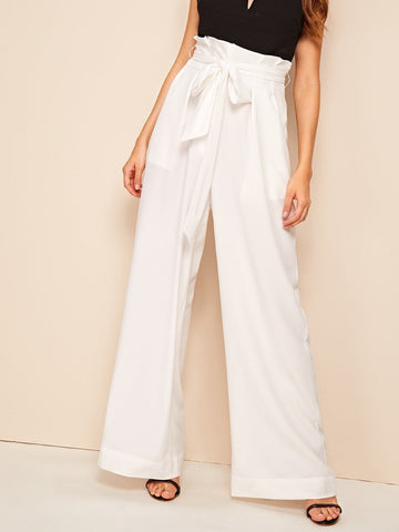 Belted Paperbag Waist Wide Leg Pants