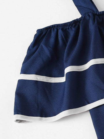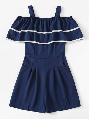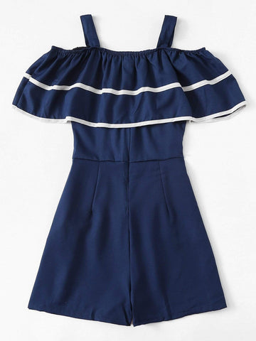 Contrast Trim Ruffle Romper